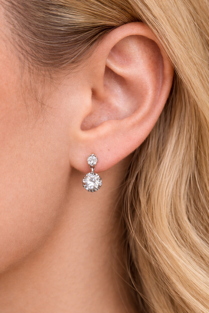 Their proportions allow them to sit just below the earlobe. The old mine cuts display the soft, broad facets and distinctive glow associated with hand-cut antique stones.