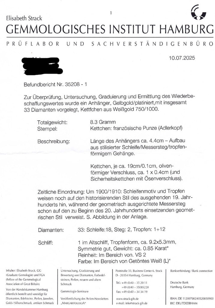 Certificate & Appraisal: Professionally examined, graded, and appraised by a court-appointed gemologist at the Gemmological Institute Hamburg (GG, FGA). Includes independent appraisal report (from 07.2025) with insurance replacement value.