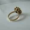 A vintage flower ring with a sculptural, layered construction and a strong presence on the hand.